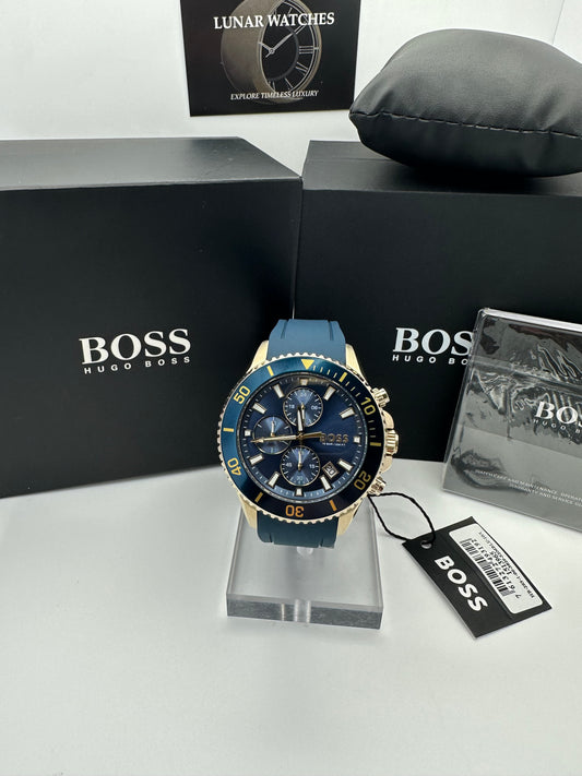 HB1513965 Admiral Blue & Gold Tone Dial Stainless Steel, Silicon Strap Mens Chronograph Watch