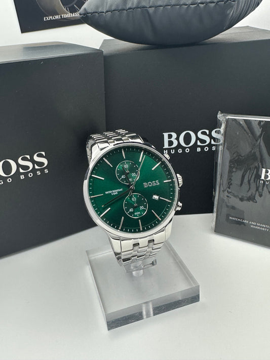 HB1513975 Green Dial Silver Tone Bracelet Stainless Steel Mens Chronograph Watch