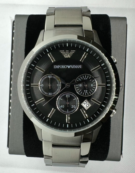 AR2434 Men’s Chronograph Watch – Classic Black Dial with Stainless Steel Bracelet