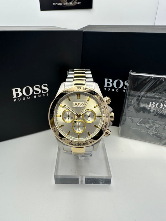 HB1512960 Two-Tone Gold Men’s Chronograph Watch – Classic White Dial with Stainless Steel Bracelet