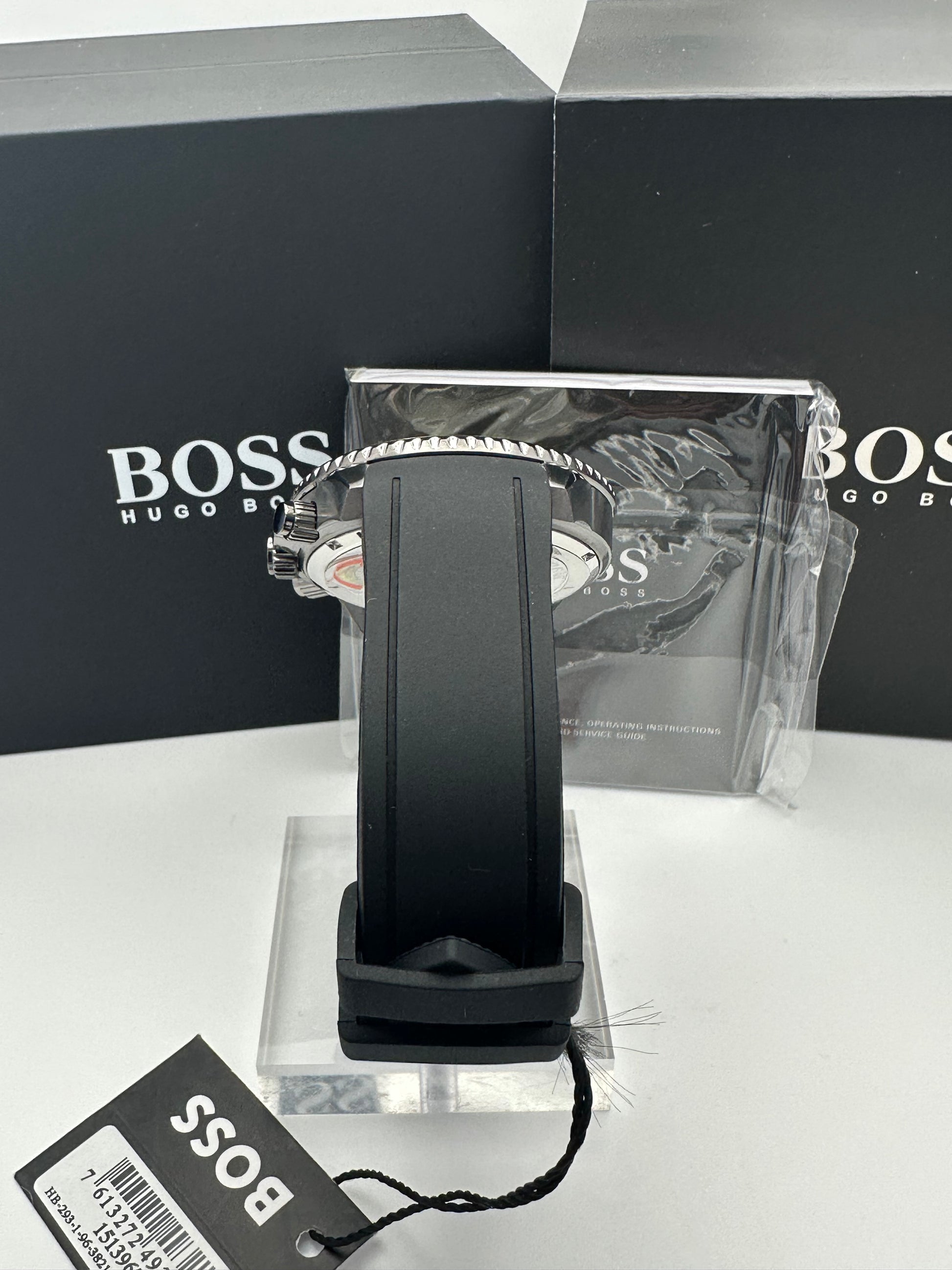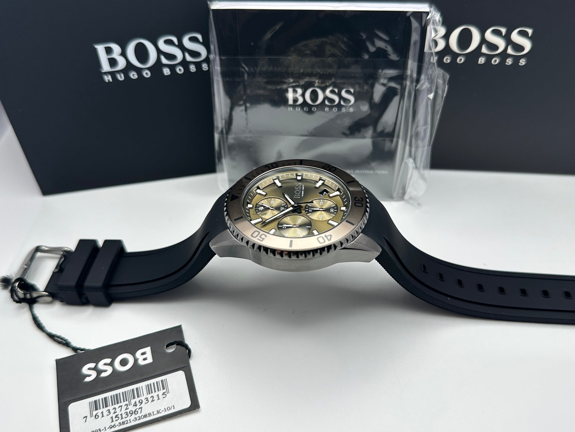 BOSS Admiral 1513967 Olive Green Dial Black Silicon Strap Mens Chronograph Watch
