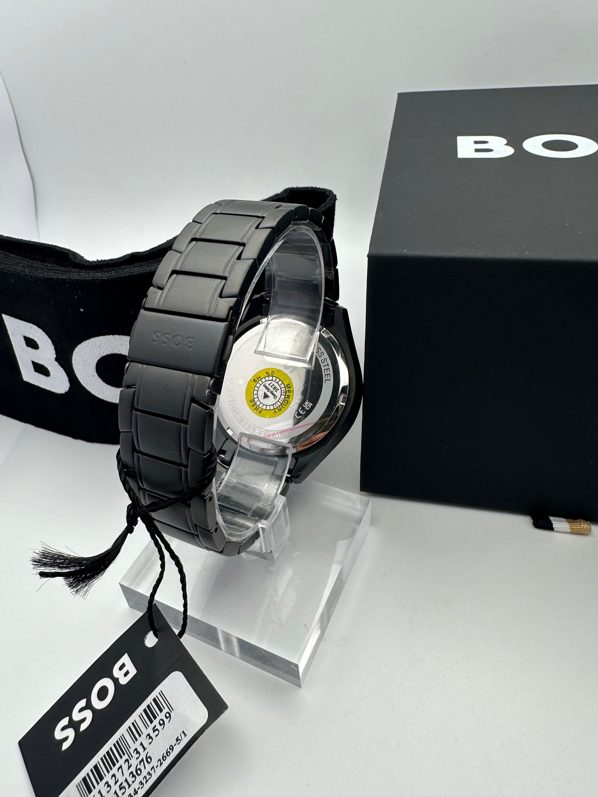In the box: HB Watch, Manual/Warranty Booklet, Tag, Seals, Box and Box Cover.