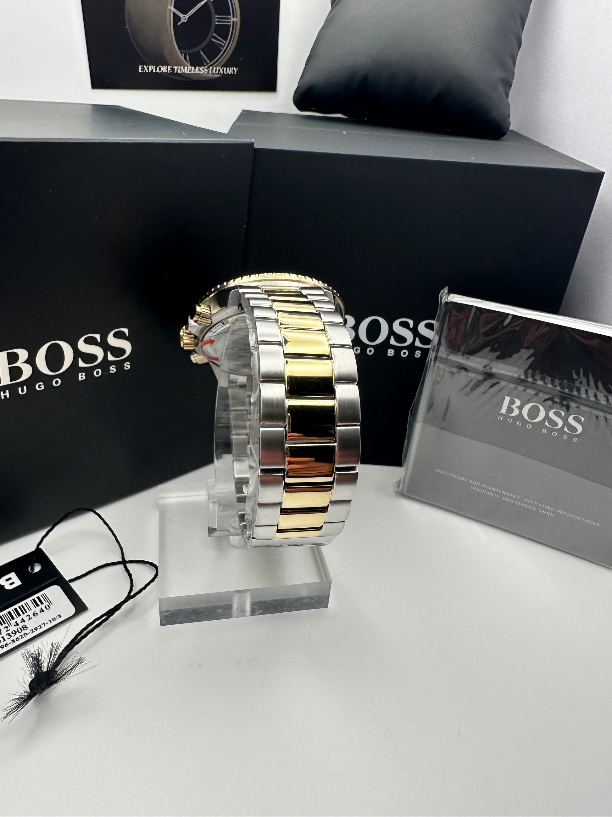 In the box: HB Watch, Manual/Warranty Booklet, Tag, Seals, Box and Box Cover.