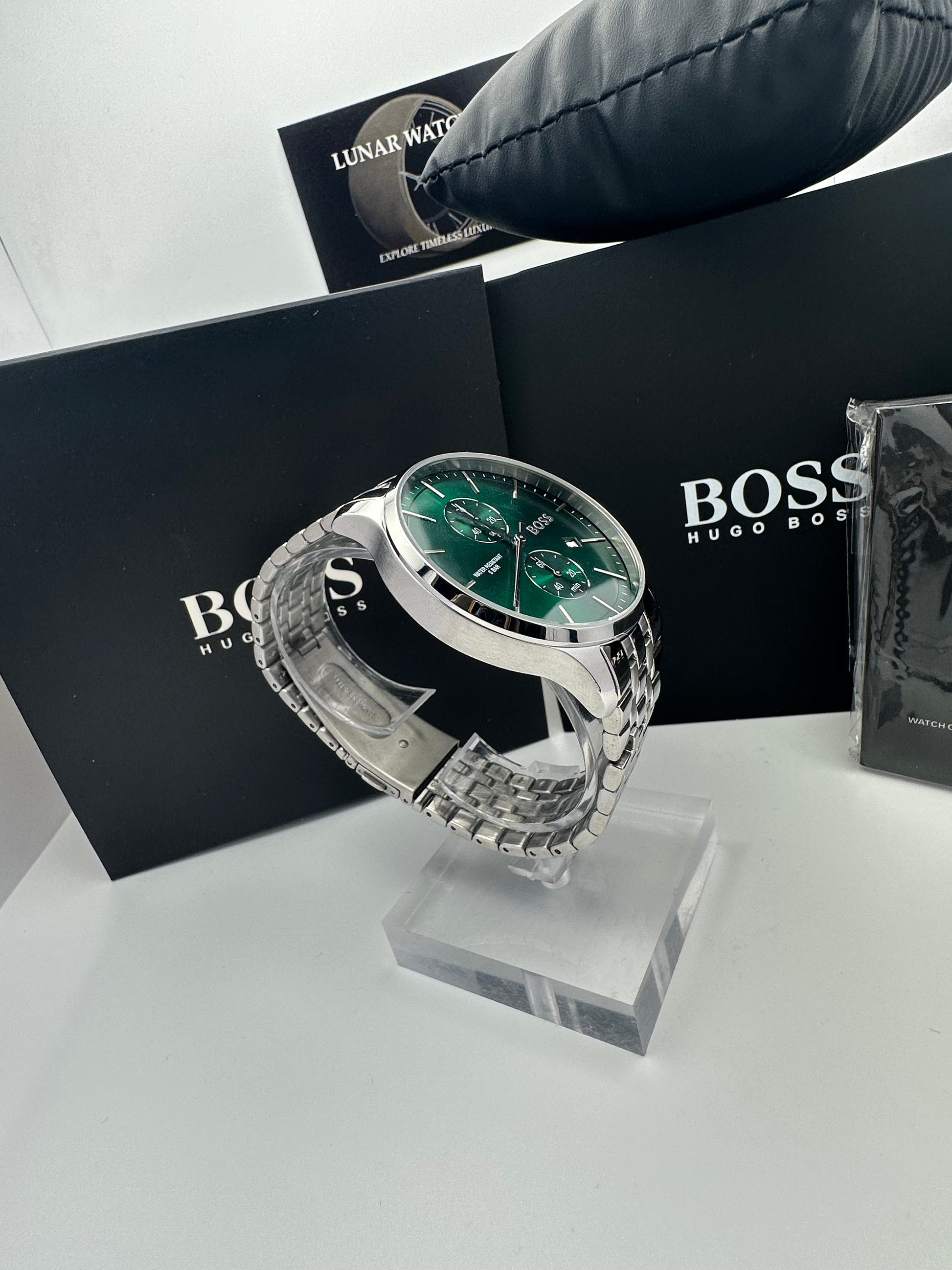 HB1513975 Green Dial Silver Tone Bracelet Stainless Steel Mens Chronograph Watch