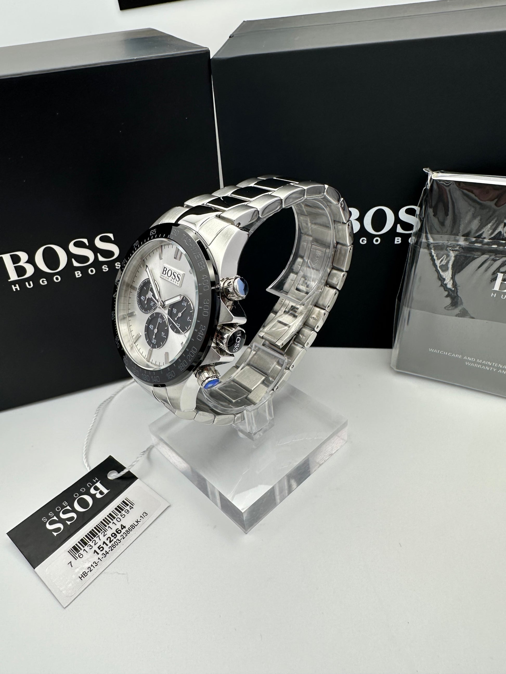 In the box: Watch, Hugo Boss Case, Manual/Warranty Booklet, Tags, Seals and Box Cover.