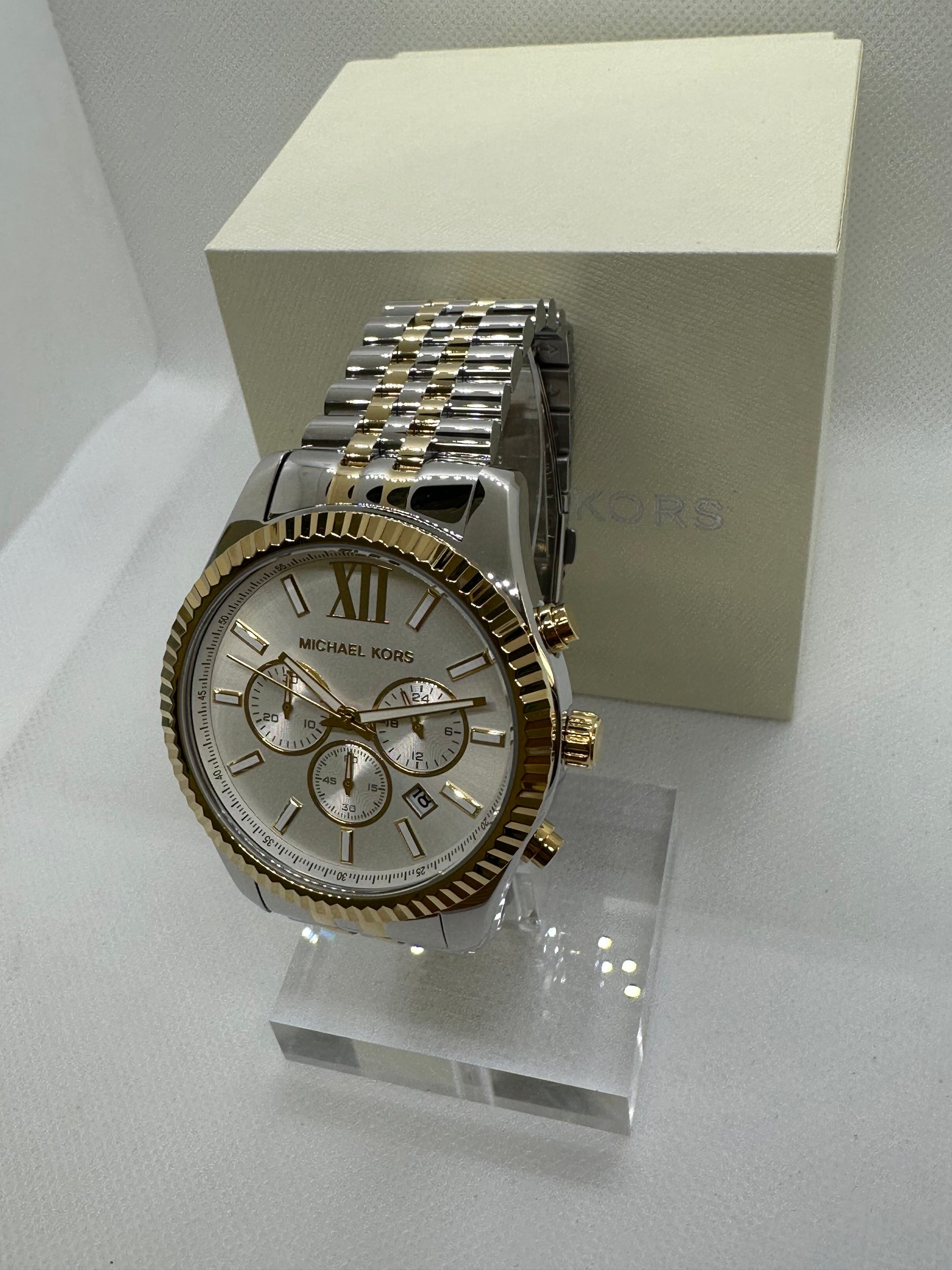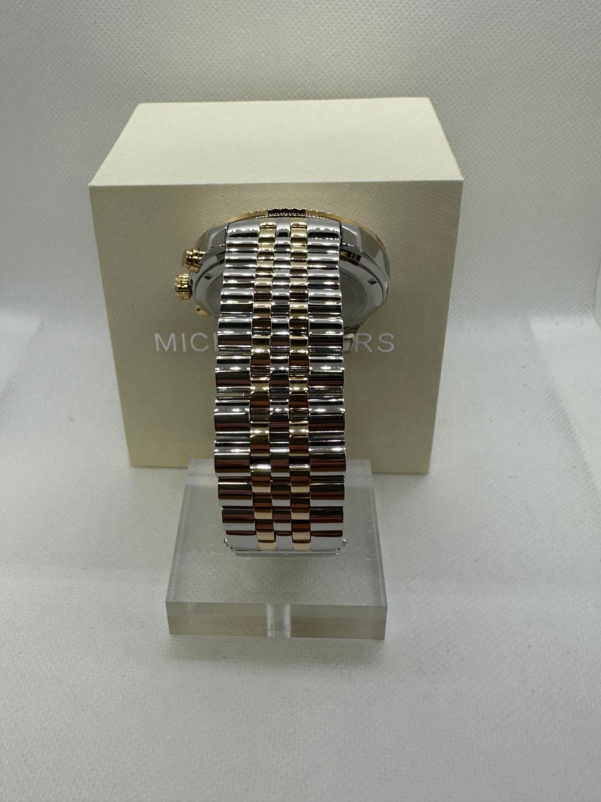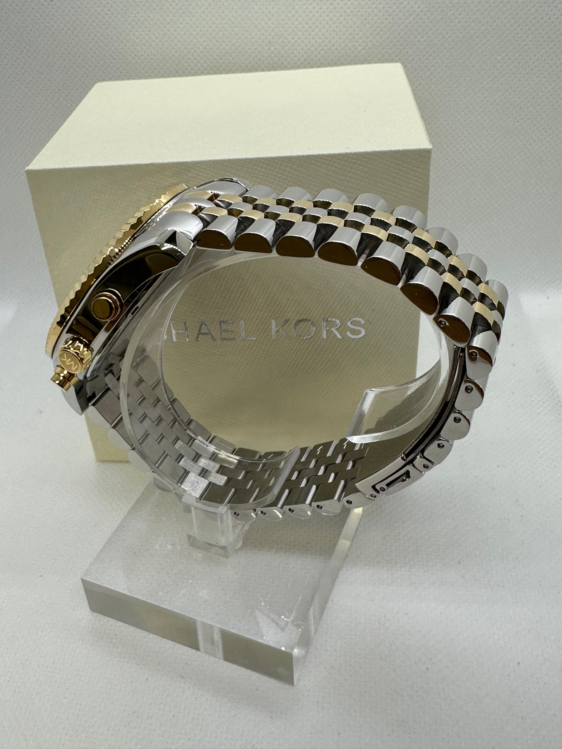 MK8344 Men’s Chronograph Watch – Sunburst Silver Dial with Stainless Steel Two-Tone Jubilee Strap